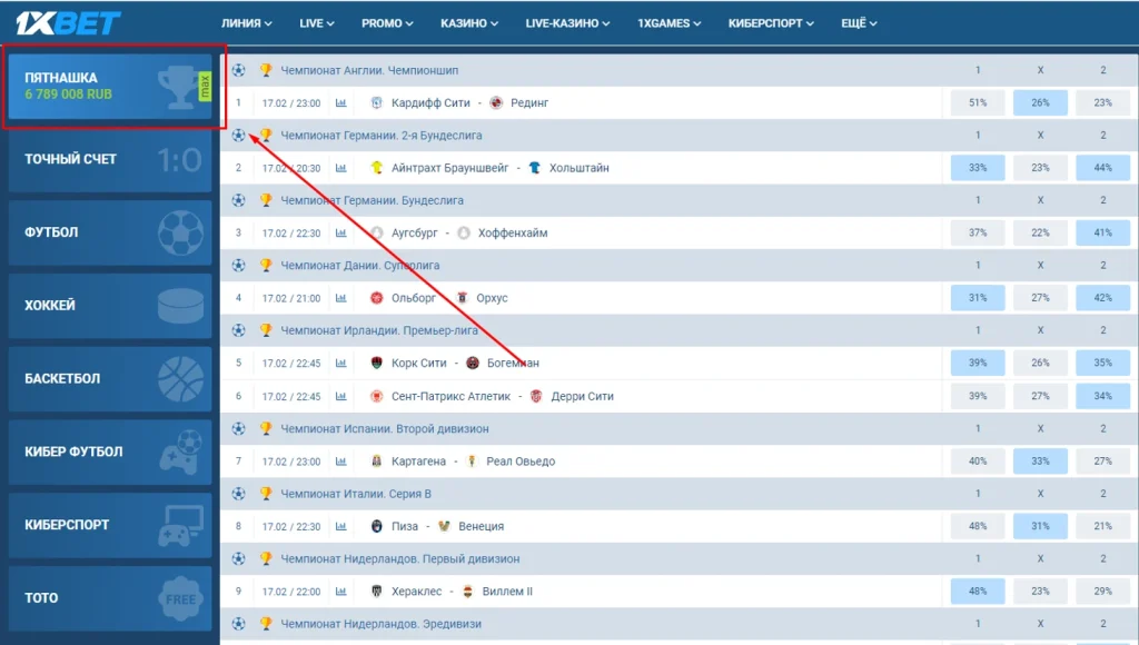Как сделать ставку в тото «15 из 15» в 1хБет?